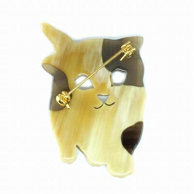 白水牛と黒水牛を切り抜いて猫の姿に張り合わせた水牛ブローチです。