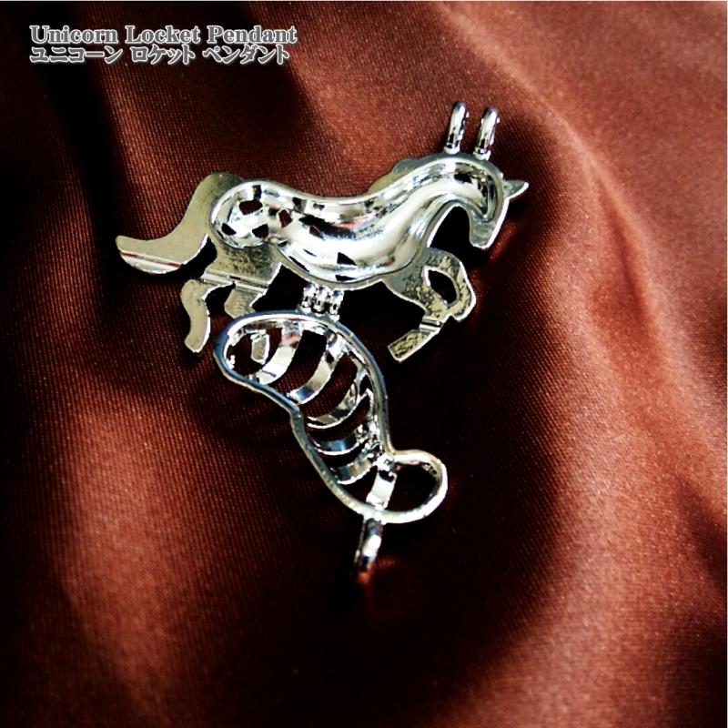 【ロケットペンダント ユニコーン】 ロケットネックレスのユニコーン モチーフ 透かし模様となっており、アロマペンダントとして お使いいただく方にもいかがでしょう チェーンはボールチェーン約70cm ロケットペンダントとして開閉する際は チェーンを取り外す必要があります。