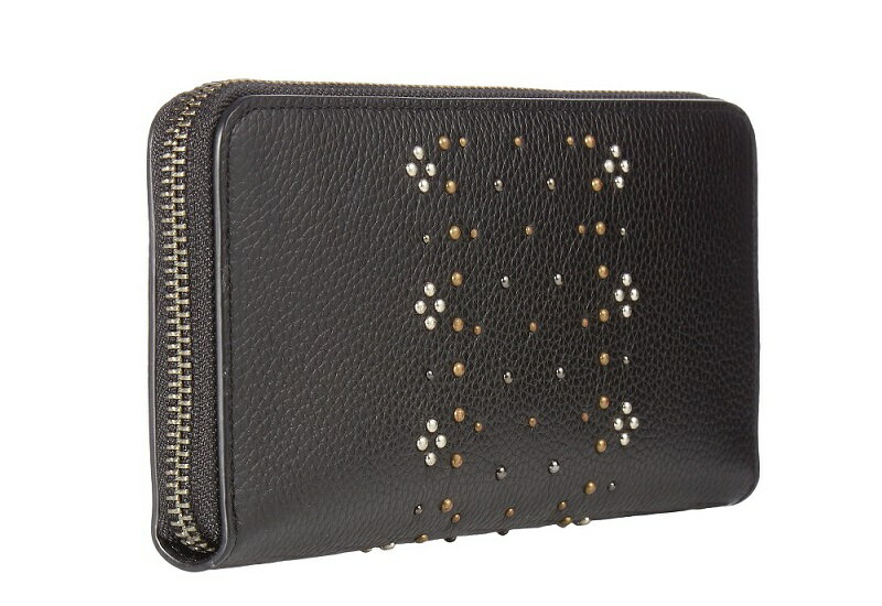 COACH 長財布 バンダナ リベット スリム アコーディオン ジップ ウォレット ペブル レザー ブラック 57232 送料無料 ペブル レザーで作り上げられ耐久性に優れ軽量でバンダナ リベットが施されたキュートで個性的な印象と洗練さを持ち合わせた逸品のレザーウォレットです。
